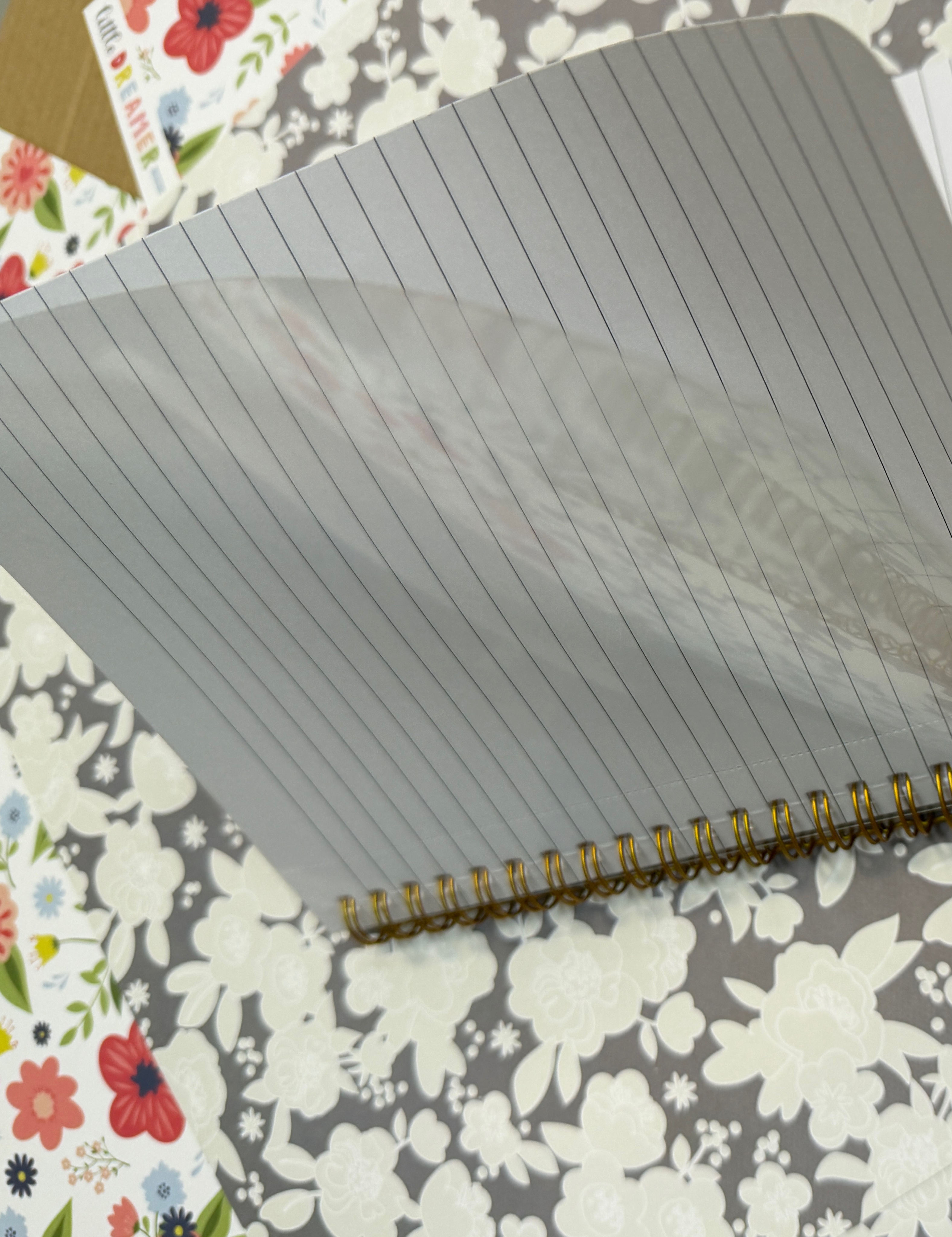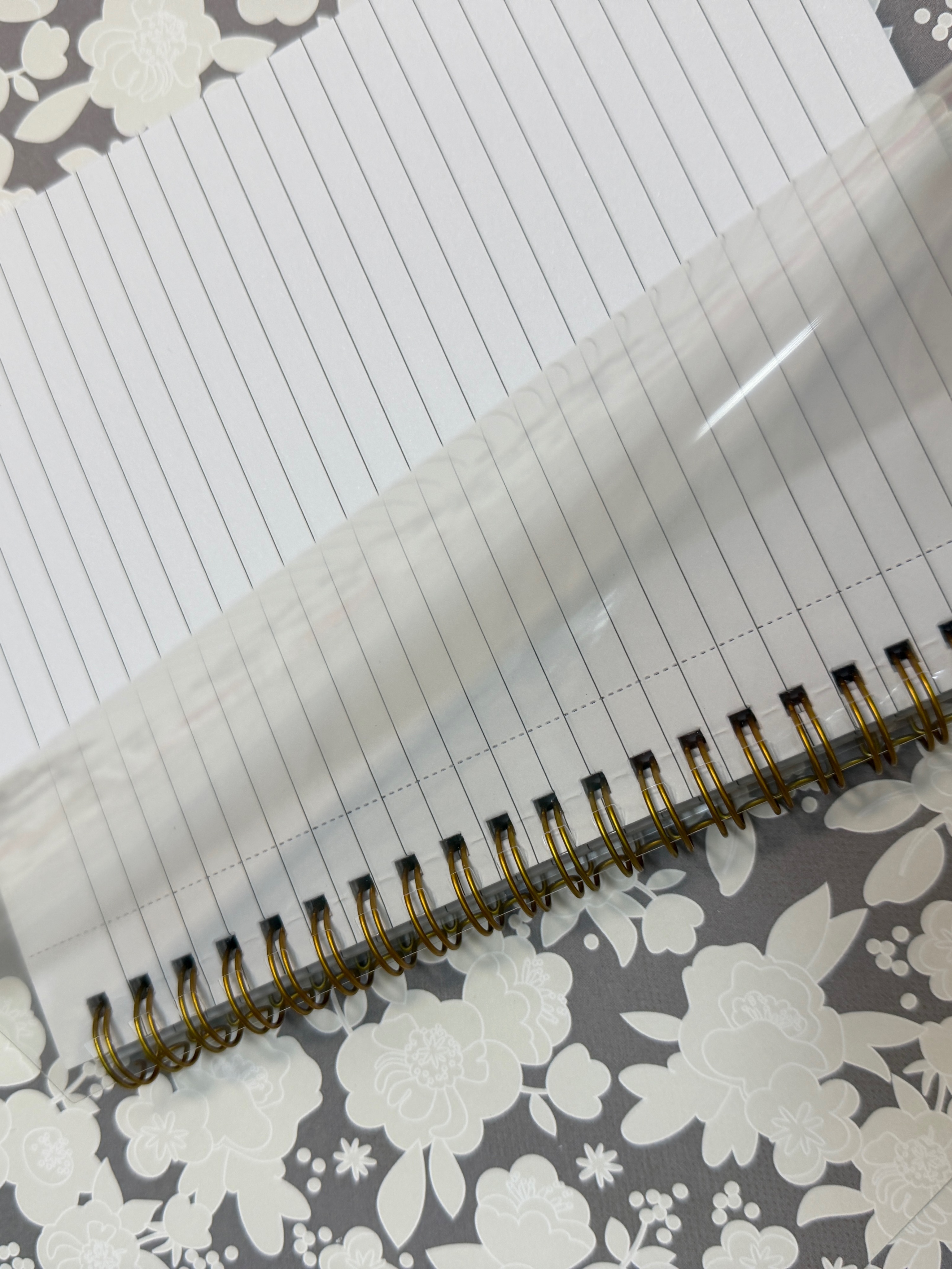 Тетрадь в прозрачной пластиковой обложке, в линию, с пефорацией для отрывания листов, размер 14х19 см, золотая пружина, скругленые углы листов